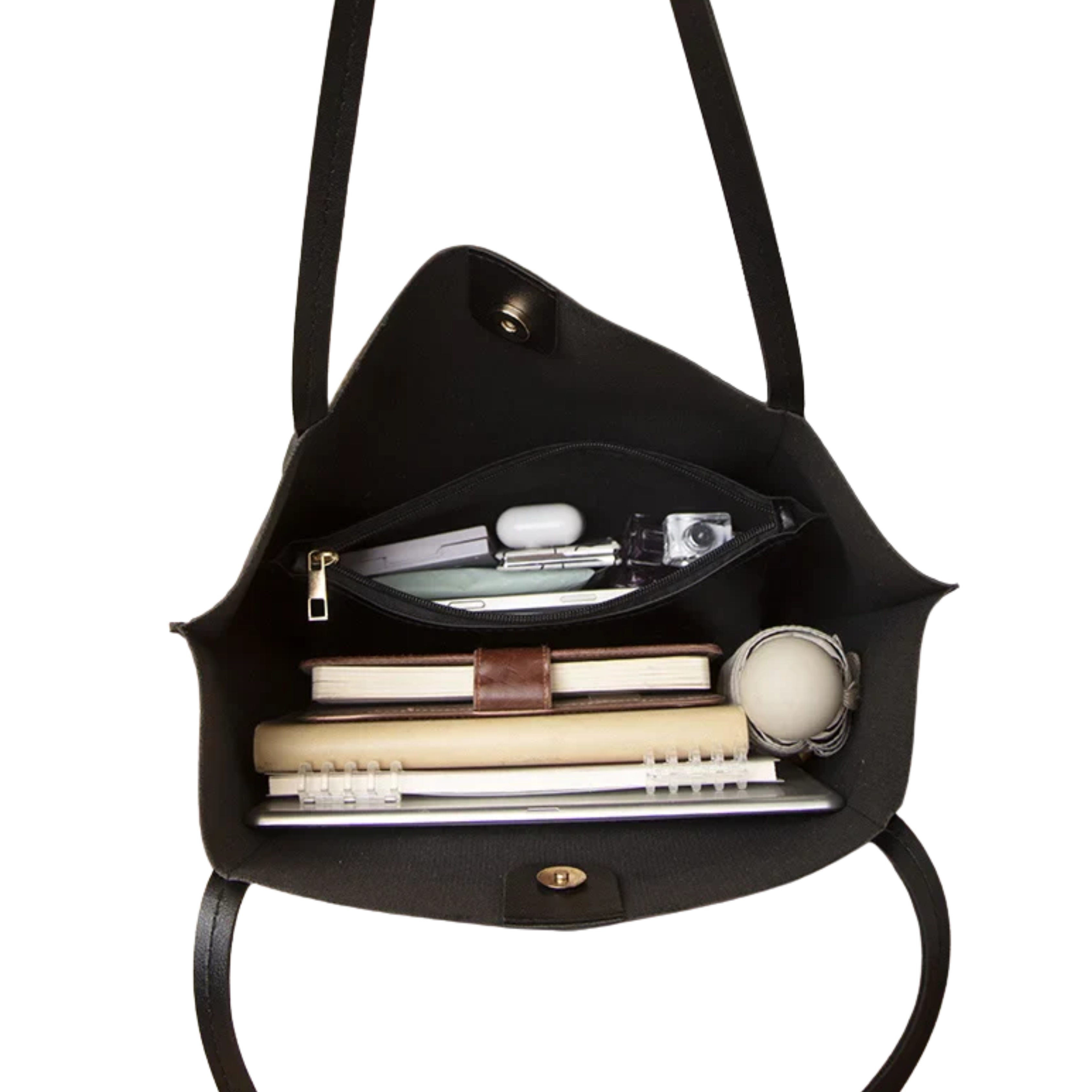 Un sac cabas raffiné au design minimaliste, pensé pour sublimer ton quotidien. Sa grande capacité accueille facilement tous tes essentiels, tandis que sa matière douce et résistante assure un confort optimal à l’épaule. Un indispensable chic, aussi pratique au travail que lors de tes déplacements ou sorties.